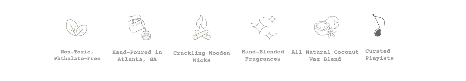 Crafted with natural coco apricot wax and wood crackling wicks, our candles are clean-burning, long-lasting, vegan, and toxin-free. Thoughtfully made from start to finish, they don’t just fill your space — they move through it.